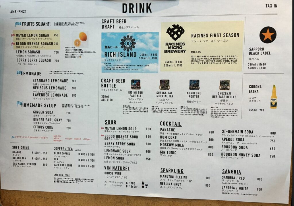 徳島のマイヤーレモンのスカッシュ(750円)や、愛媛ブラッドオレンジのスカッシュ(750円)などこだわりのメニューが多数ありました。