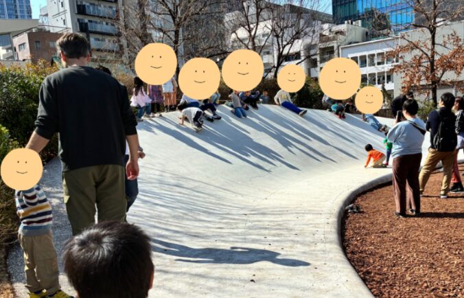 芝生の横には、滑り台のような斜面があり子ども達に大人気でした!
