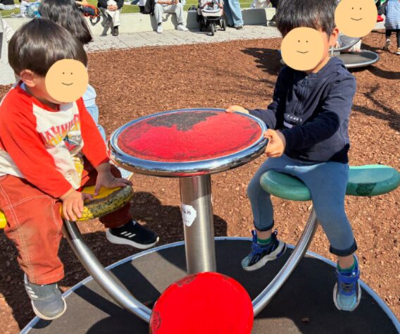 コーヒーカップのようなグルグル回る遊具もあり、遊ぶことができましたよ。