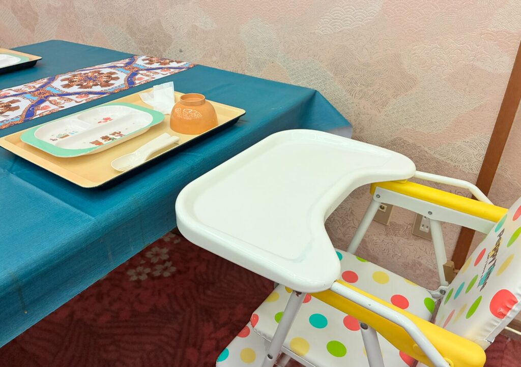 こちらのお宿お子様歓迎のようでして、子ども椅子や子ども用食器を用意してくださいました。