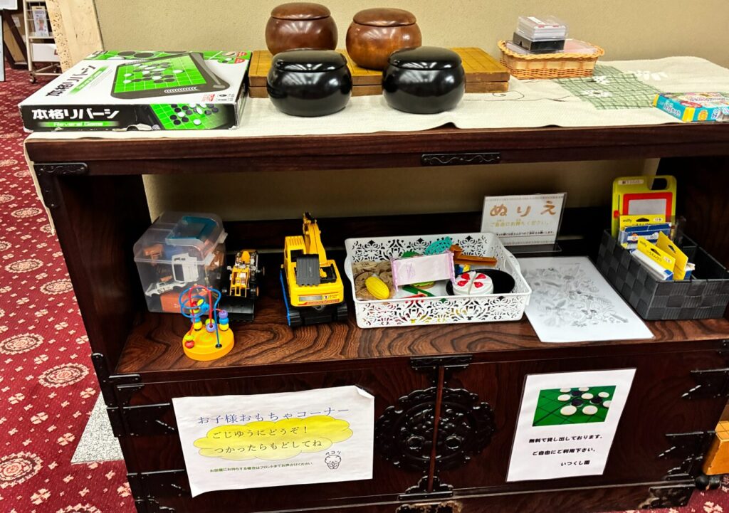 またロビー横にオモチャの無料貸し出しもあり、長男が大喜びでした。