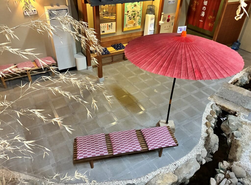 温泉の入り口の小川が流れていて雰囲気を醸し出しています。