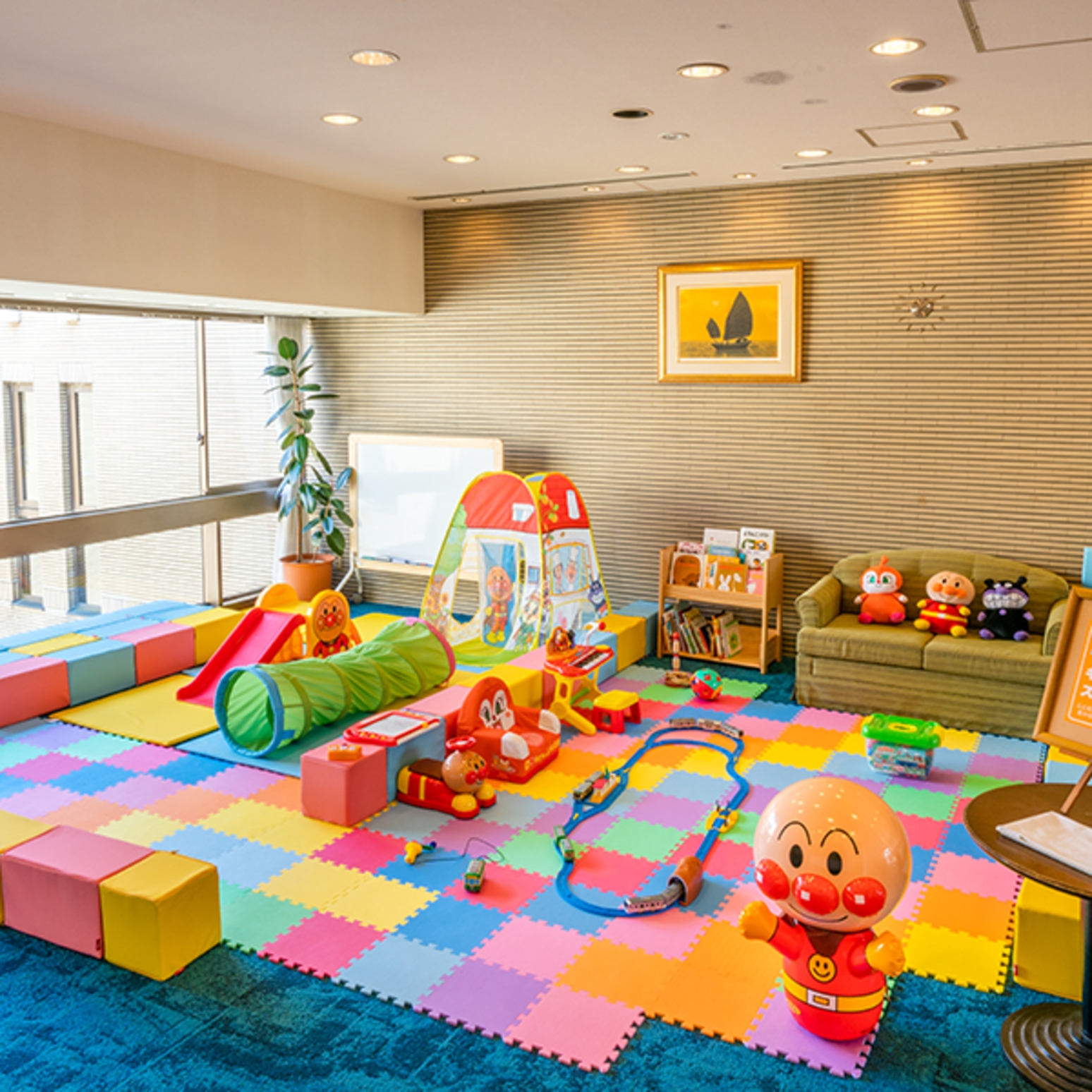✓館内にアンパンマンのいるキッズスペースや屋内温水プールあり