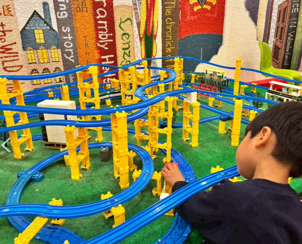 大規模なプラレールコーナーがあって、これが本当に見事。