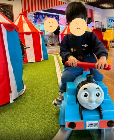 またトーマスのレールの上を走る乗り物カーもあって、小さい子どもにも人気でした。