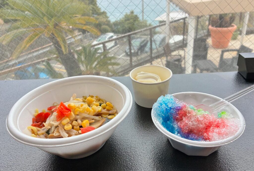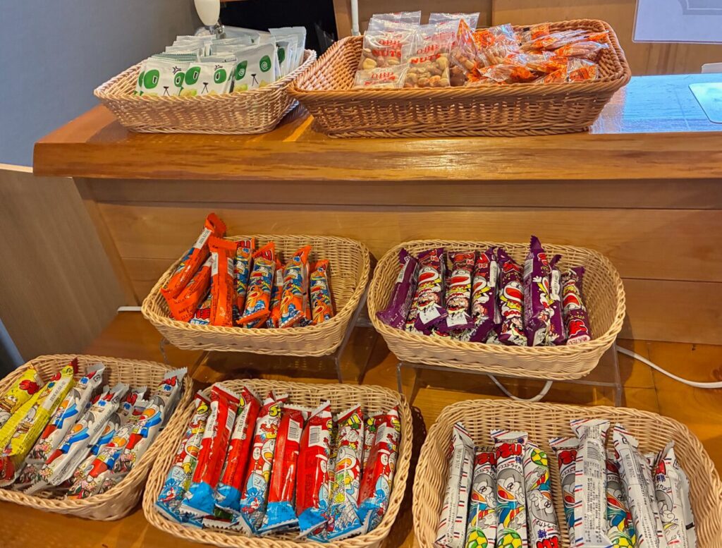 ランチ代わりに使えるメニューがあり、ラーメンの軽食・パンケーキ・アイス・駄菓子・かき氷など、子どもが喜ぶものが揃っています。