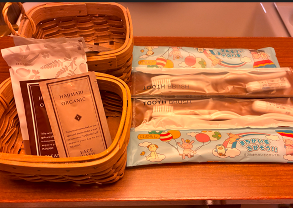 事前にお伝えして用意してもらった「おむつ用ごみ箱」や「洗面所の踏み台」、そしてキッズ用アメニティーなど、子連れへの至れり尽くせりで、大満足でした。