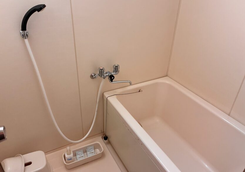 部屋備え付けのお風呂は古い感じでしたが、温泉に行くから問題なし!
