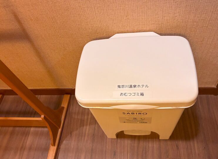 予約時に部屋に用意してもらうようにお願いしておいたおむつ用ごみ箱もちゃんとありました。