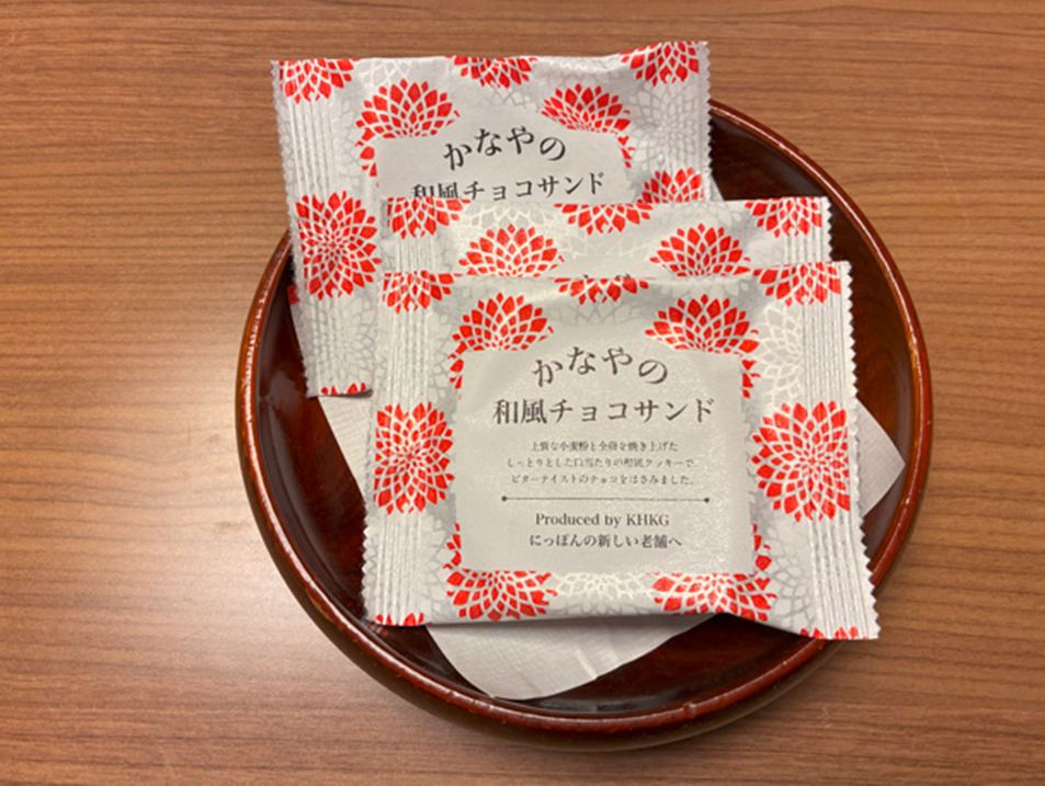 お着き菓子は、「かなやの和風チョコサンド」です。