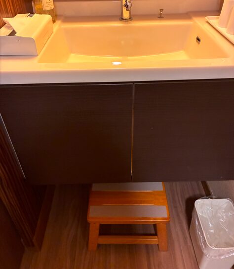 洗面所には、予約時にお願いしておいたため、子ども用の踏み台も用意していただきました。