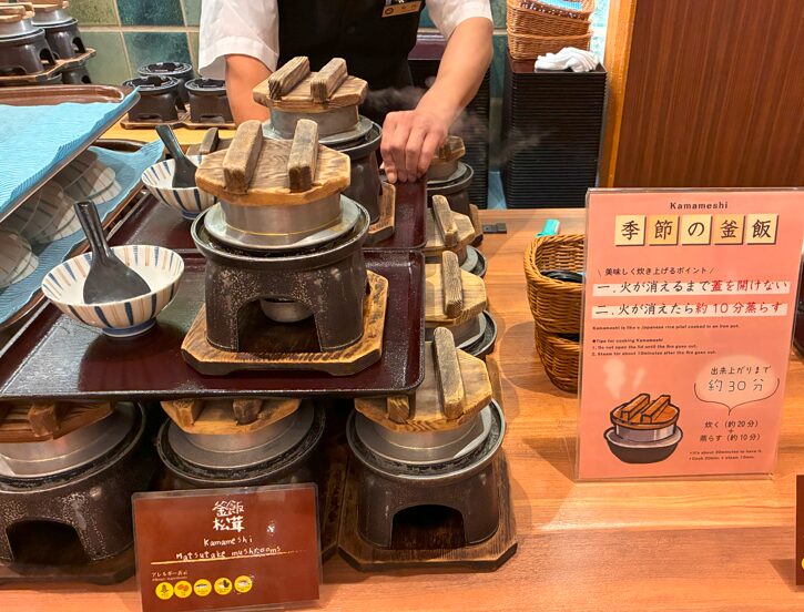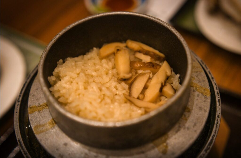 私たちは秋に行ったので、松茸の釜めしがありました。松茸の香りがよくておいしい~!
