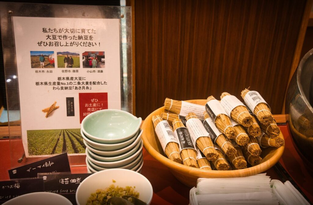 こちらの「あさ月糸」というわら包み納豆は、一粒一粒の存在感があり大豆の豆の味を感じることができました。さらにプチプチした麦も入っていて、食感に変化が出てより美味しかったです。