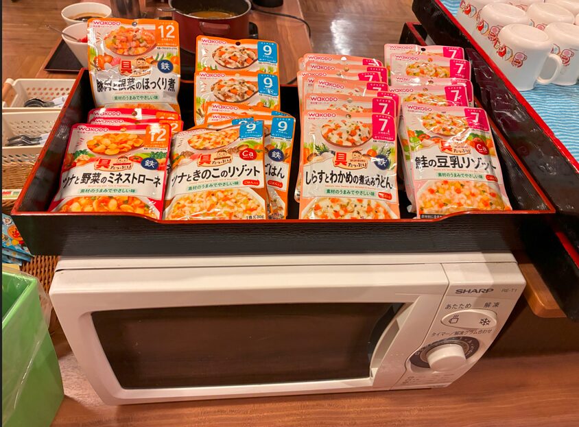 7か月~12か月の離乳食が用意されていて、電子レンジも完備されていました。
