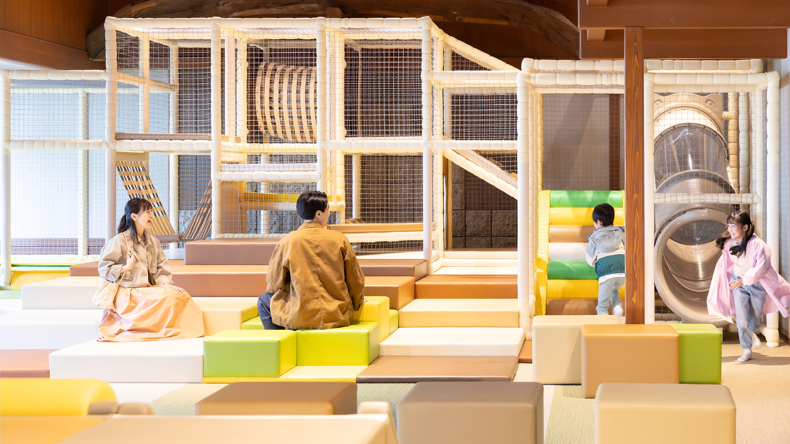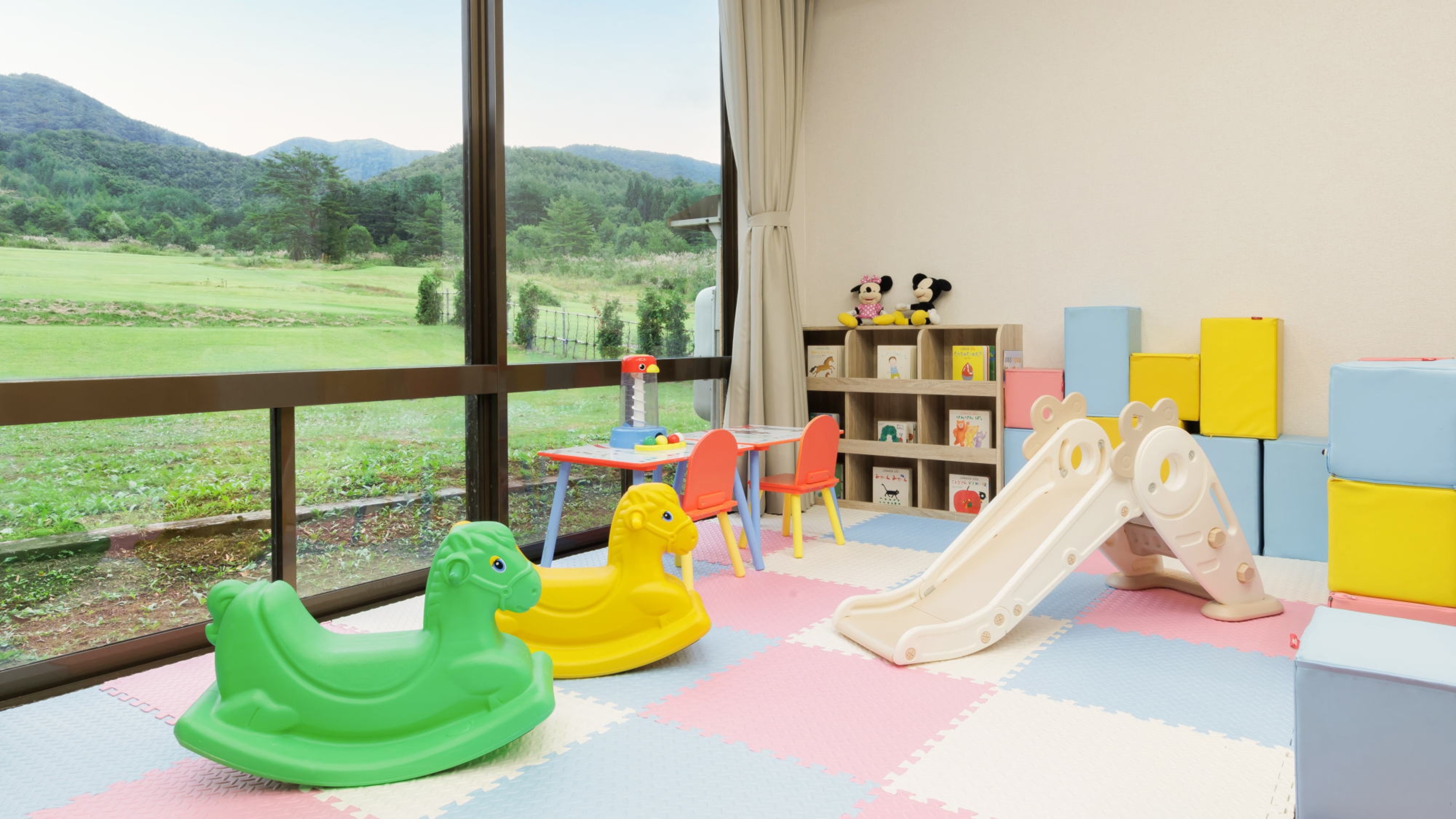 大きなキッズスペースでは子どもが思いっきり体を動かすことができますよ!