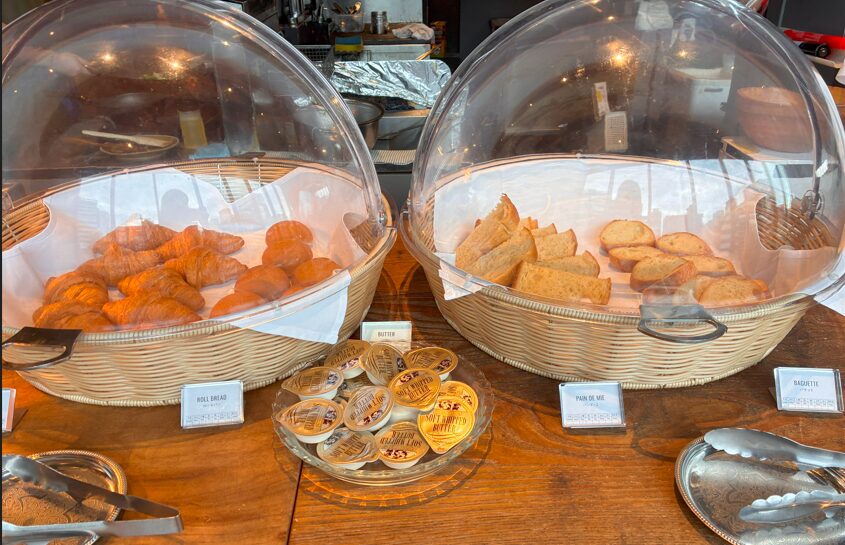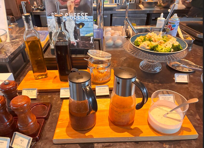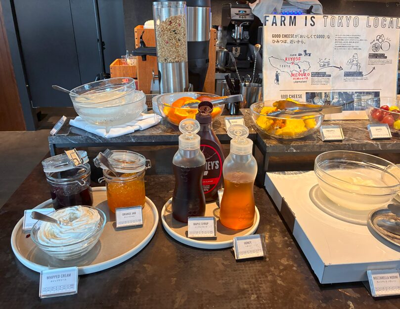 また、おそらくパンケーキやパンのトッピング用に、はちみつ、チョコレートソース、ホイップ、ジャムなどが用意されていましたよ。