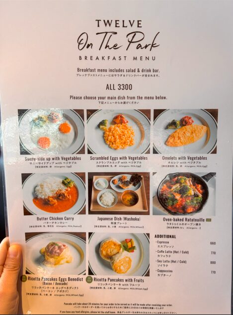 穴場モーニングは、ホテル併設レストランの「TWELVE ON THE PARK BAR & GRILLk」です。