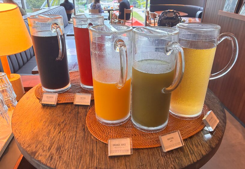 ドリンクは、オレンジジュースやリンゴジュース、アイスコーヒー、アイスティーに加え、抹茶がありました。