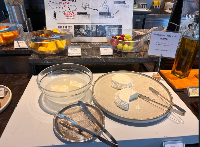 ハーフビュッフェの中でとりわけおいしかったものが、リコッタチーズとモッツァレラチーズです。