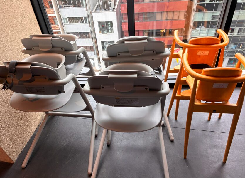 キッズチェアも用意されていました。子ども用の皿やフォークなどが並んでいなかったので、店員さんに聞いてみたところ、お声がけすれば出していただけるとのことでした。
