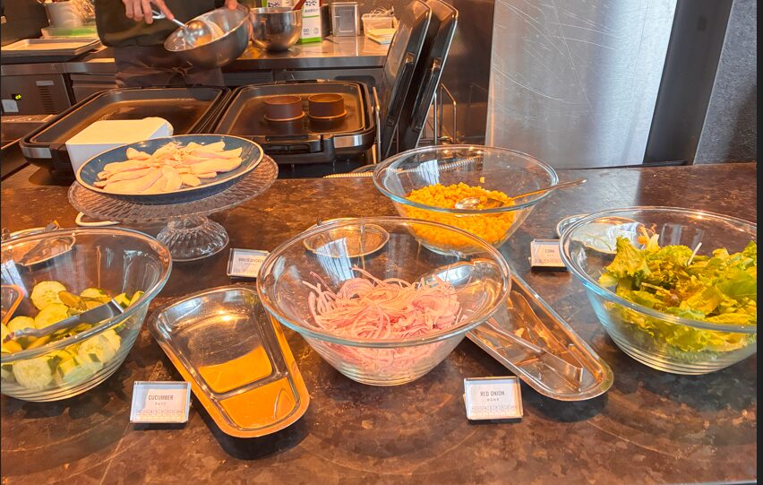彩り&鮮度抜群のサラダやベーコンなどが充実