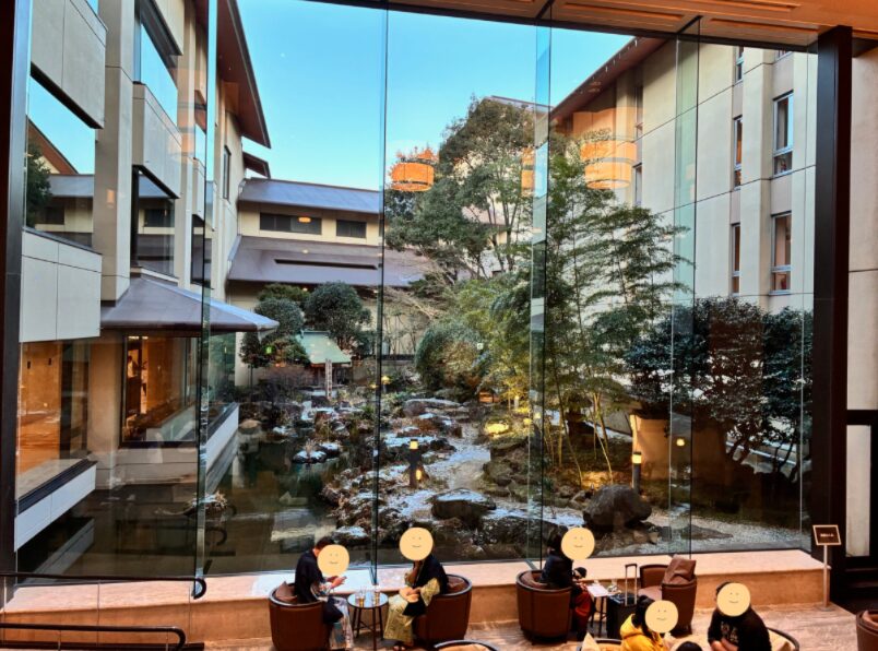 庭園を望む吹き抜けのラウンジは開放感があり、最高でした!