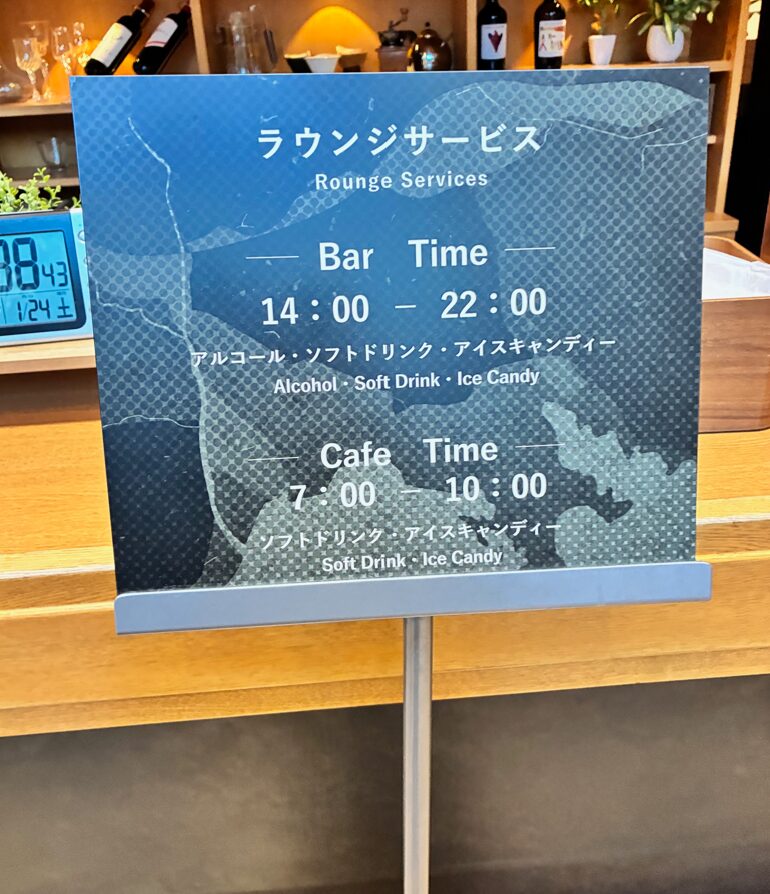 ラウンジの営業時間は宿泊日と翌朝の両方やっていました!