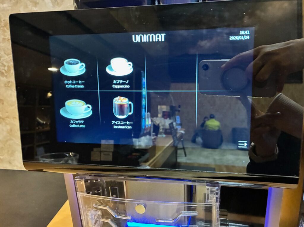 珈琲マシーンはその場で豆を挽くタイプで、ホットコーヒー、カフェラテ、カプチーノ、アイスコーヒーがありました!