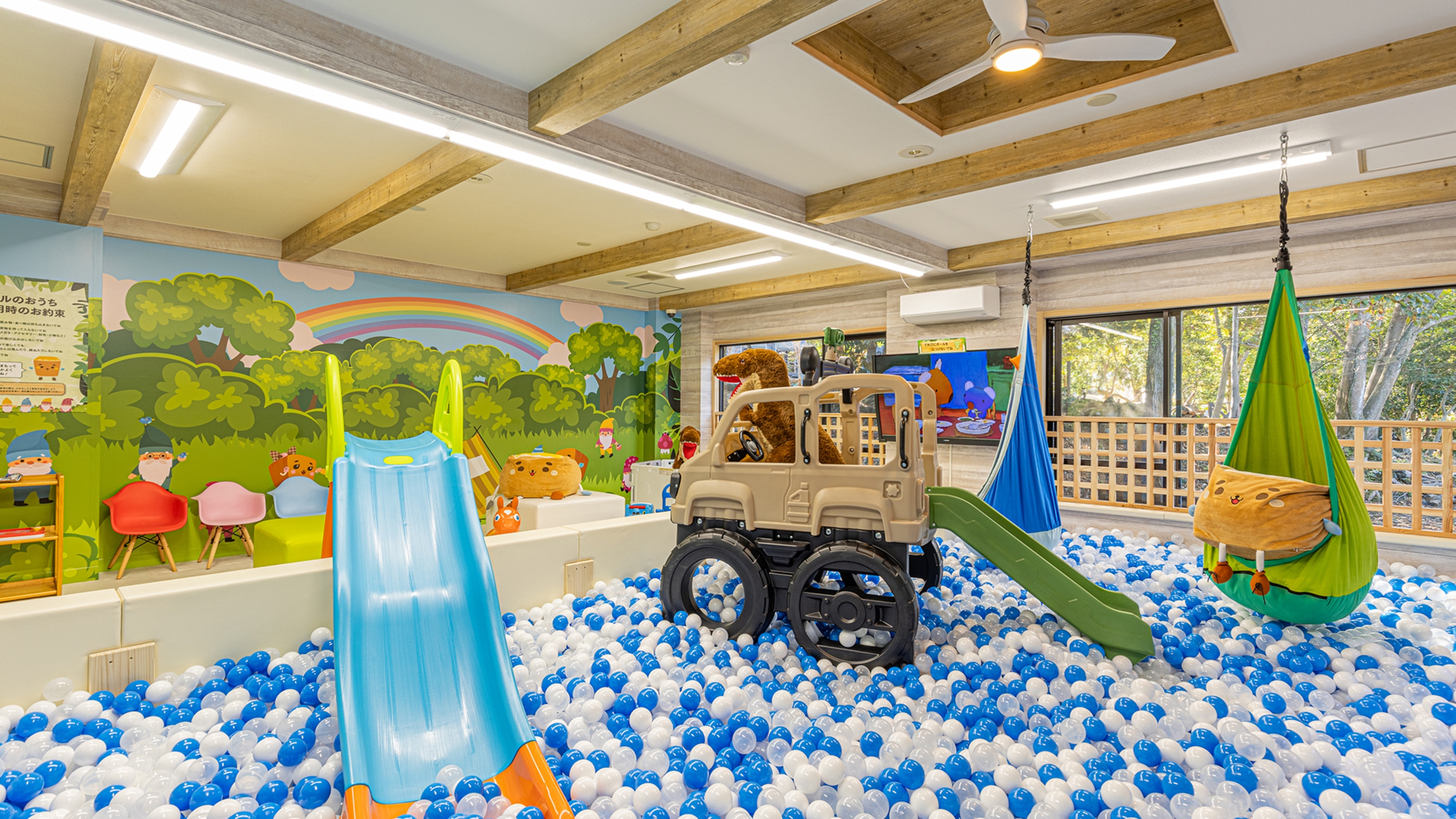 ボールプールやカラオケなどのキッズスペースも無料で遊べて、子ども大興奮のお宿です。