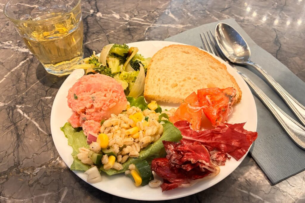 この手の込んだサラダの数々とパンが食べ放題で、本当感激しました。