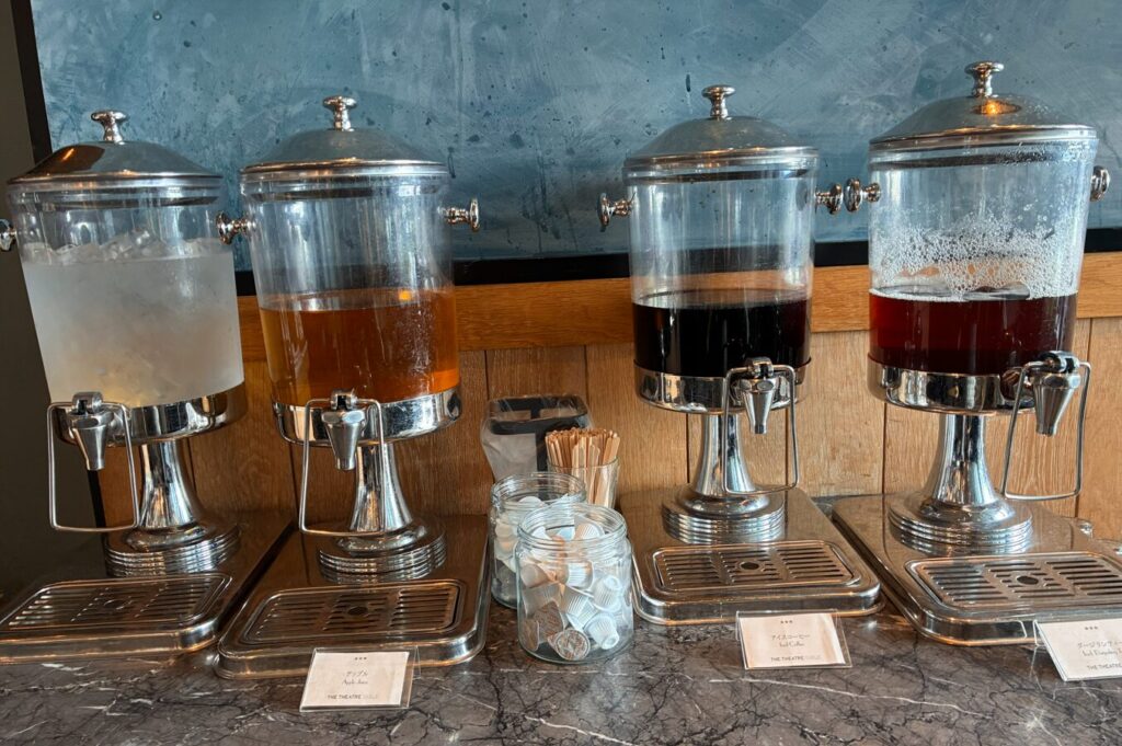 ドリンクバーには、ダージリンティー、アイスコーヒー、アップルジュース、ウォーターがありました。