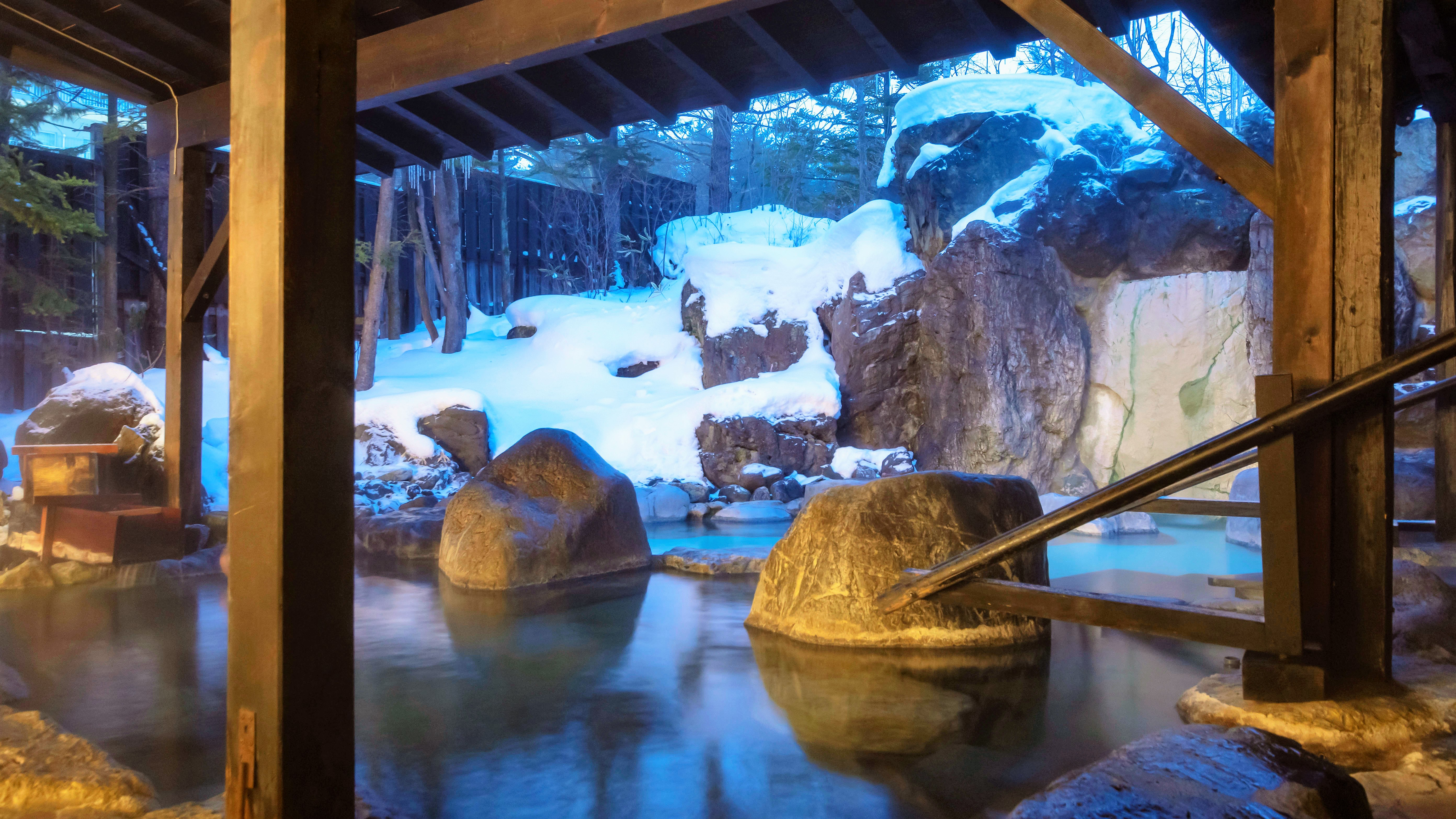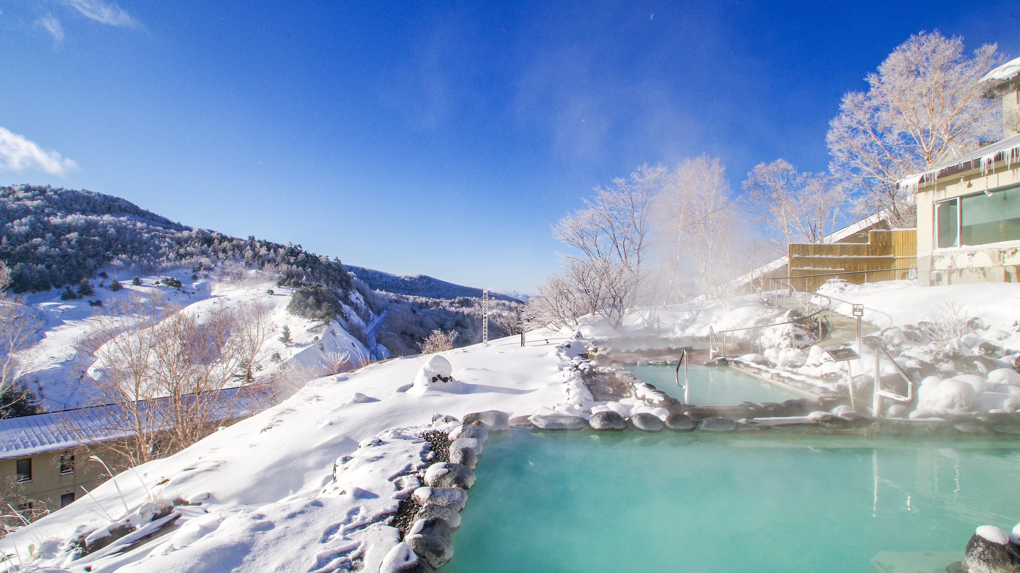 スキーや雪遊びに疲れたら、雄大な眺望の天空露天風呂が楽しめます。