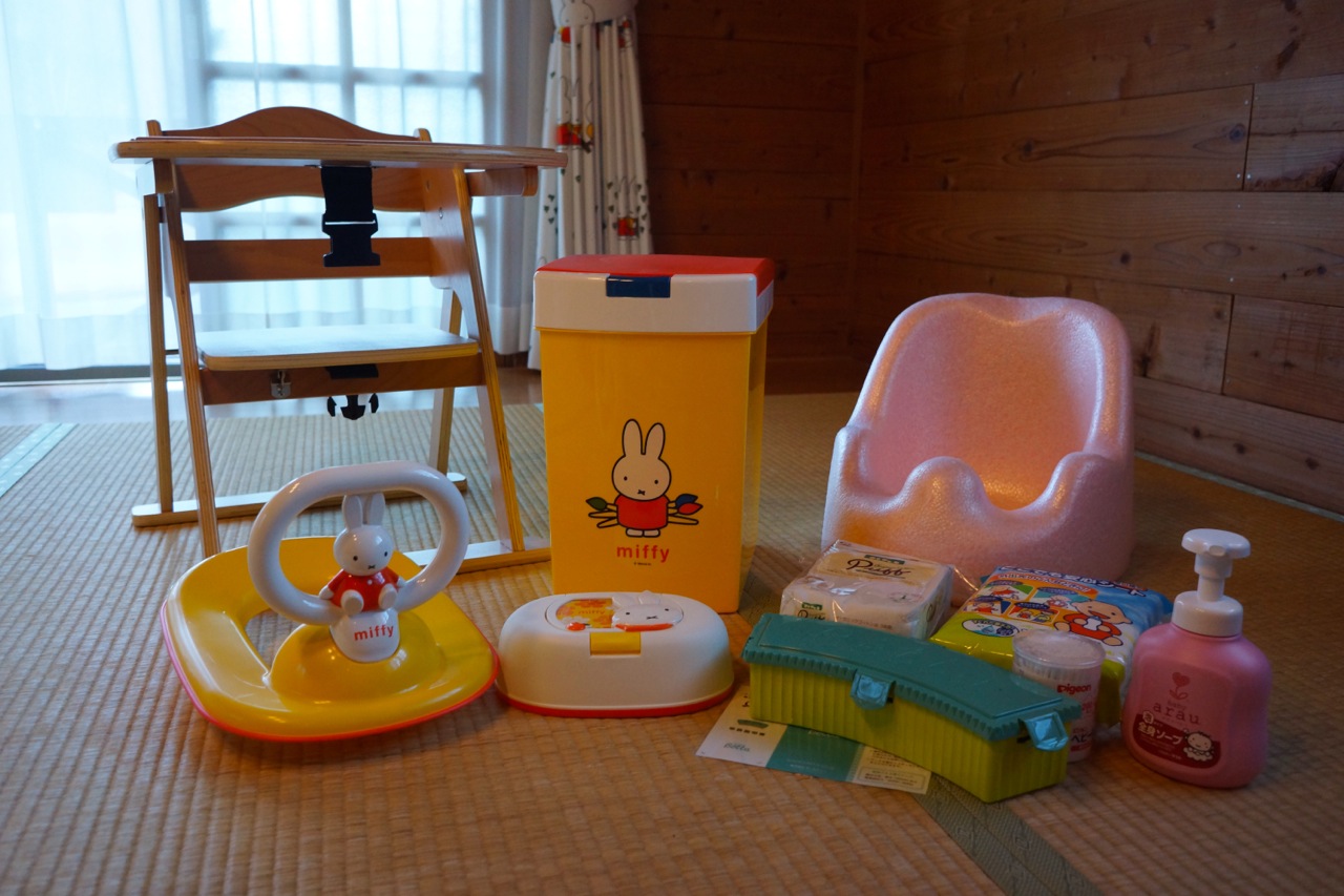 畳タイプの部屋にはオムツごみ箱やベビーソープなどの赤ちゃん向けグッツも貸し出しがあるので、安心です。