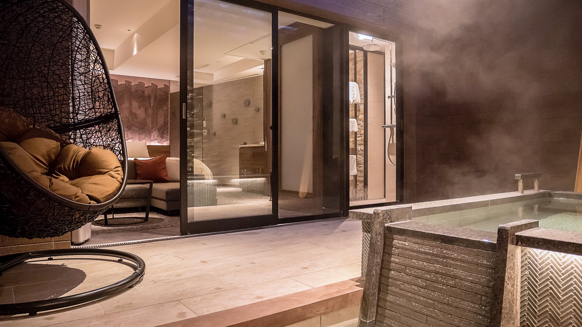 源泉かけ流しの露天風呂付客室やパレルサウナがついている客室もあります。