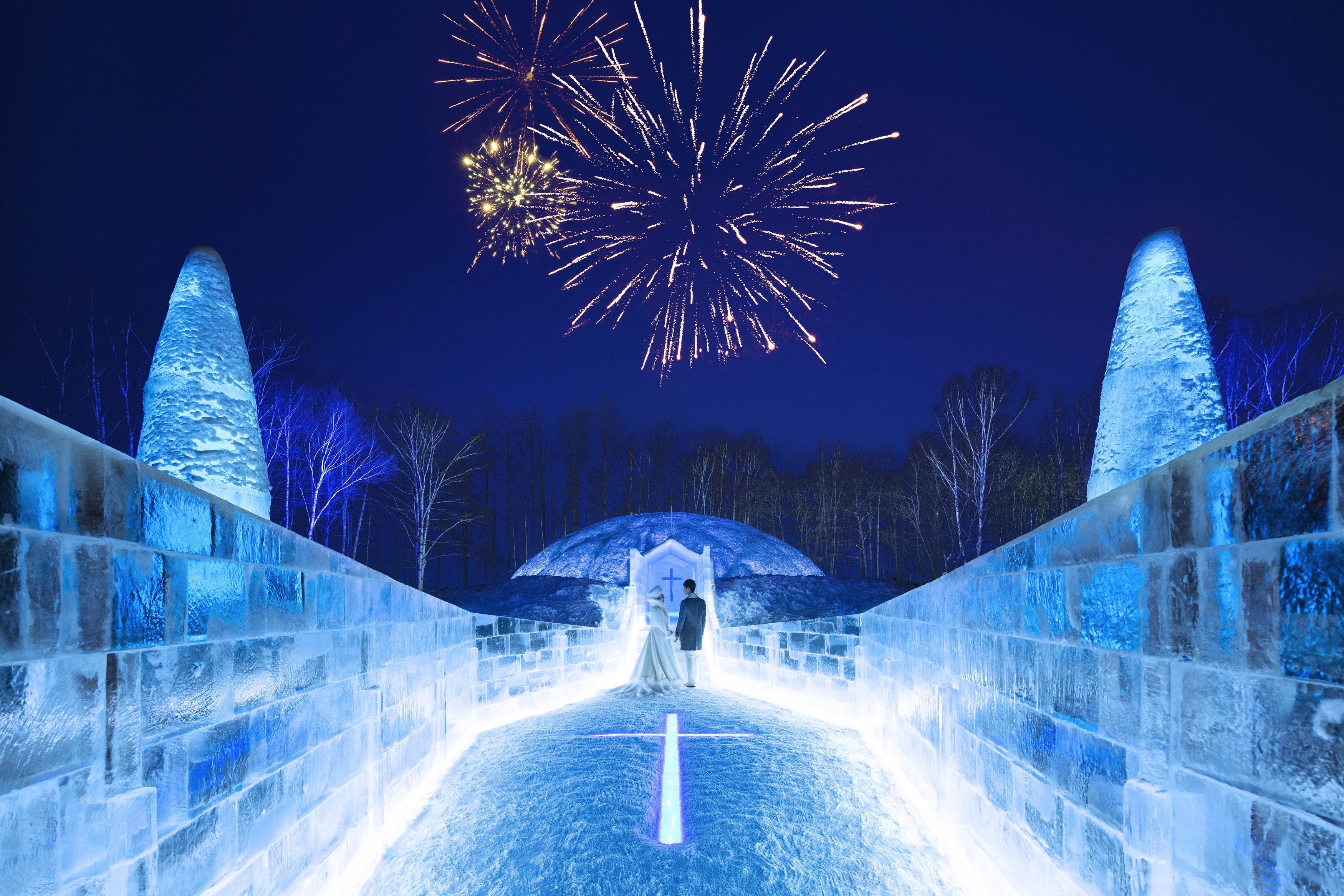 継ぎ目のない一枚氷で造られた「氷の教会」はなんともロマンチックです。「2人の純粋な気持ちが途切れなく続く」という想いが込められているんだとか。