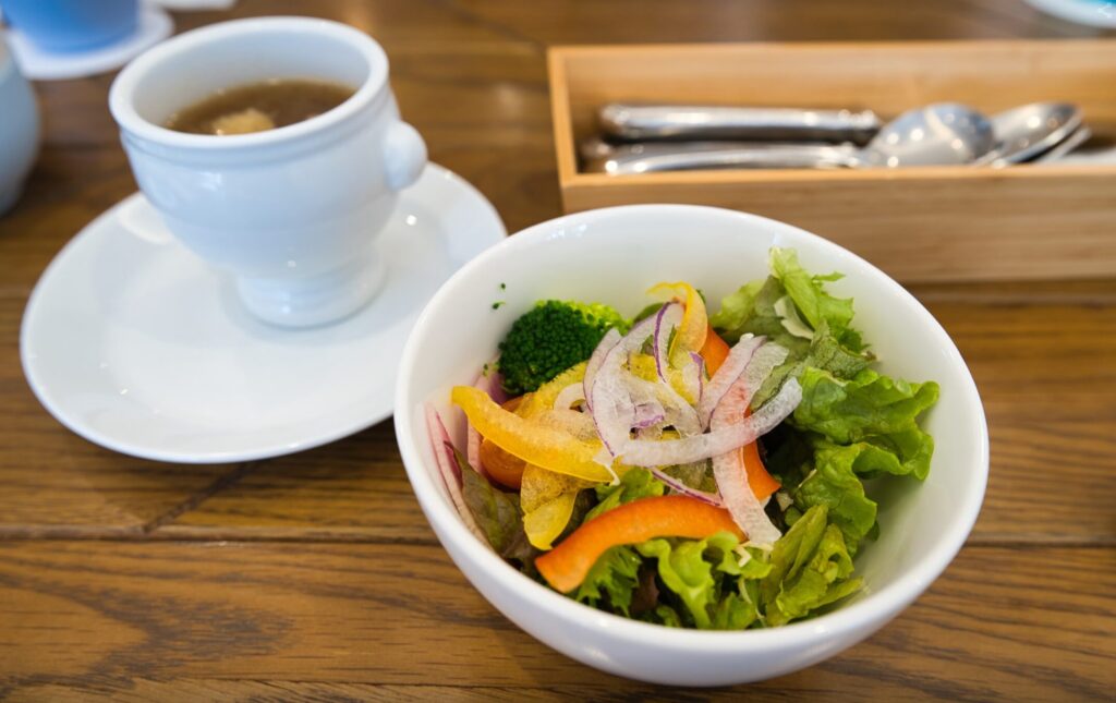 セットメニューは、サラダとスープ、そしてドリンクが付きます。