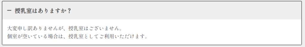 今回お宿にすぐ入る予定だったので利用しませんでしたが、個室が開いていれば授乳室として利用させてもられるようです。