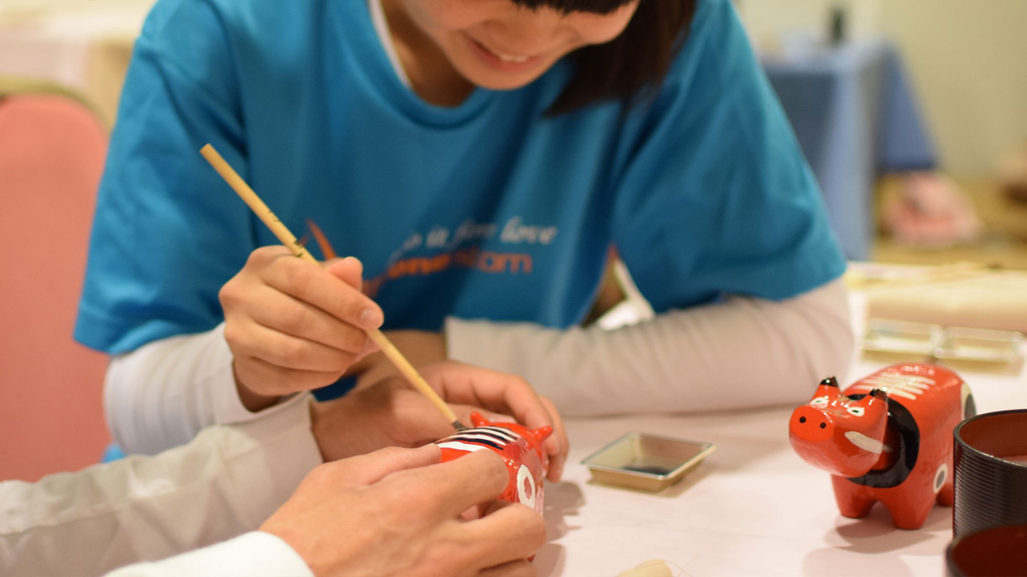 館内プログラムでは赤べこ絵付け体験(2,000円/人)もあり、悪天候の日も楽しめます!