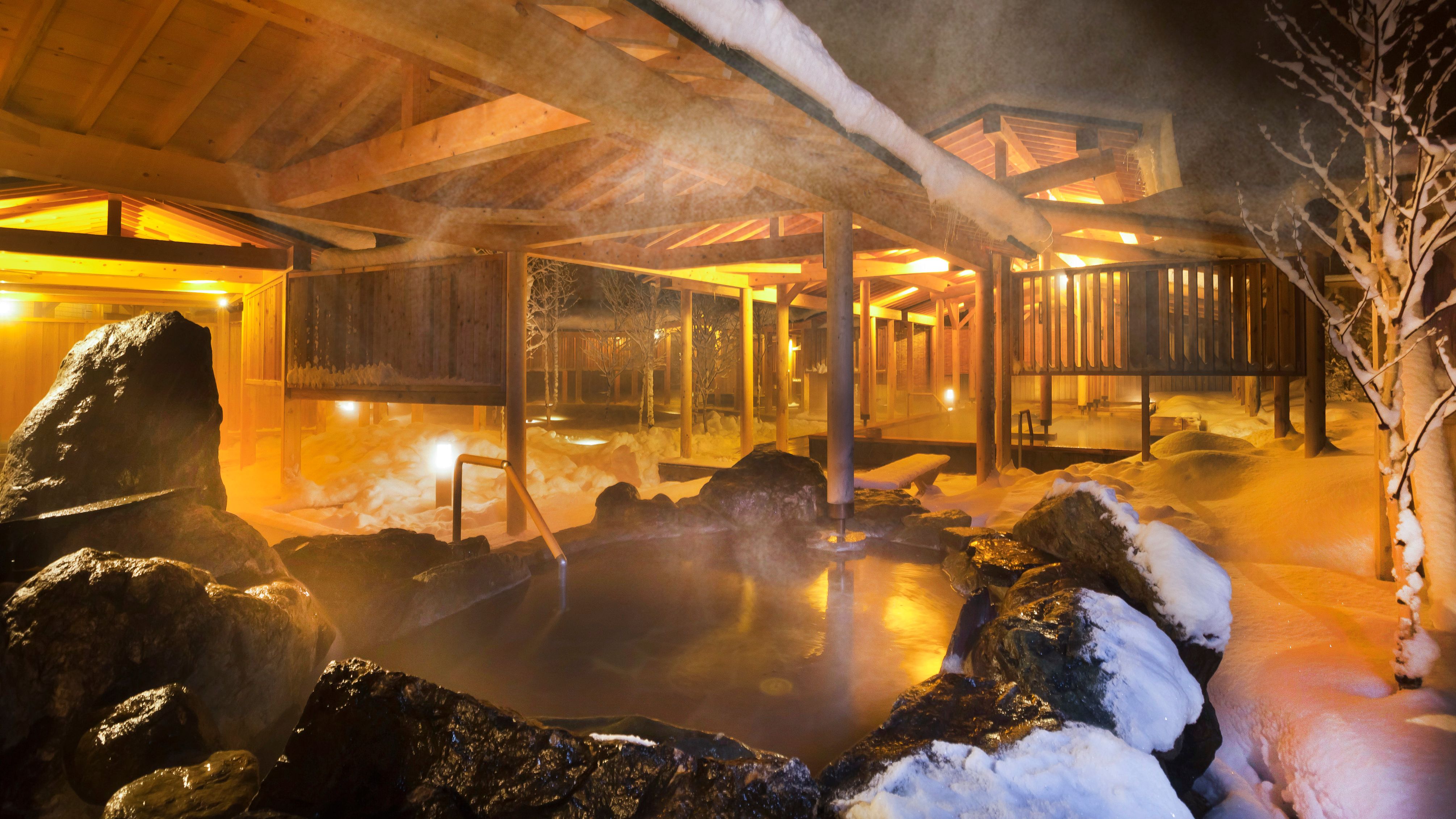 雪遊びを満喫した後は、東北最大級の露天風呂を楽しむことができます。