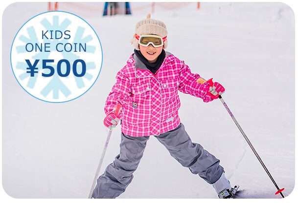 前日17時までの事前予約で、小学生以下の子どもスキースノボーセット、ウェアのレンタルが、なんと各種500円!