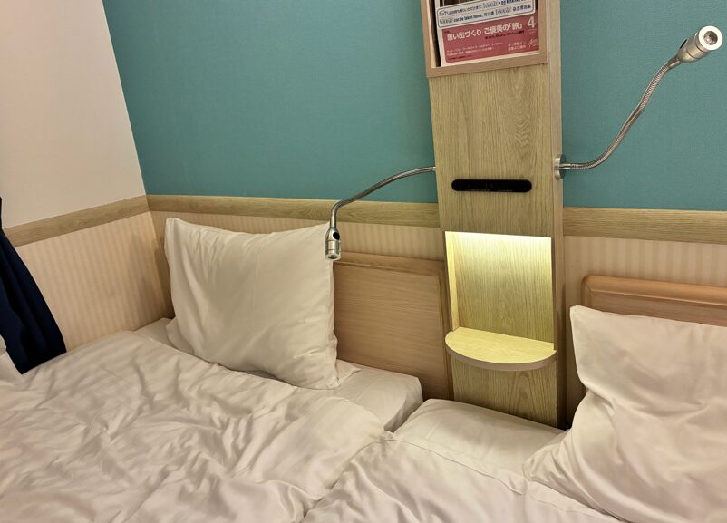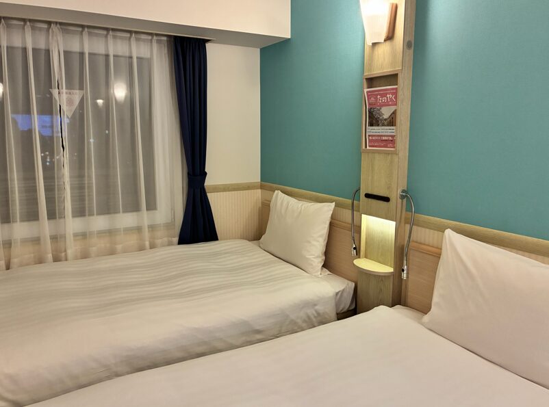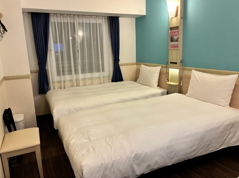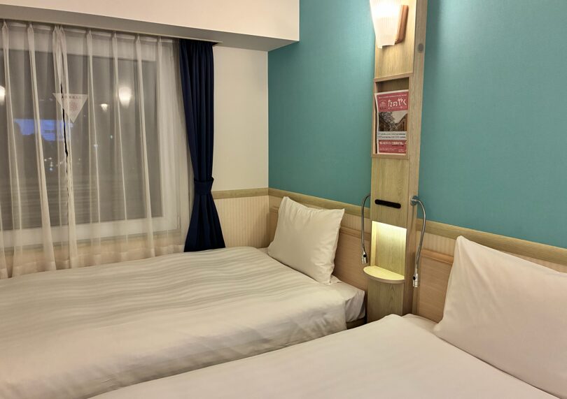 東横INN名古屋金山のツインルームはベッドが壁付きでした。