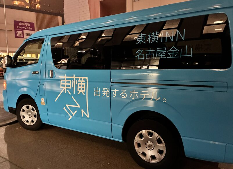 ホテルへは、金山駅から徒歩7分です。歩いても近いですが、無料シャトルバス(約3分)も利用できます。