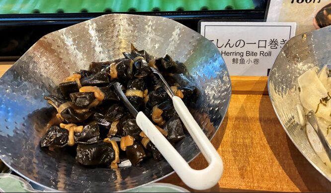 にしんの一口巻きやシシャモ、から揚げなどのおかず類も充実していましたよ。